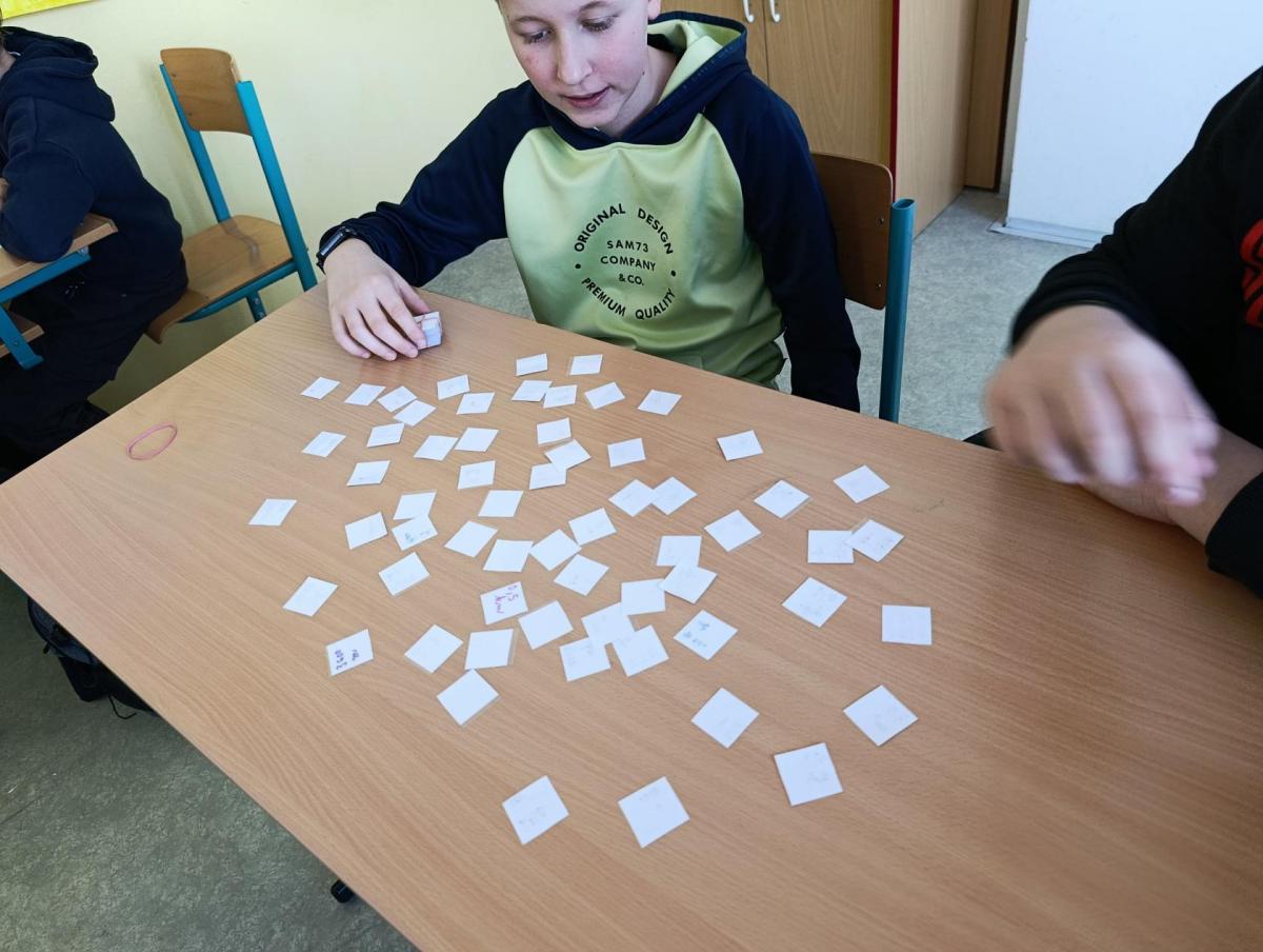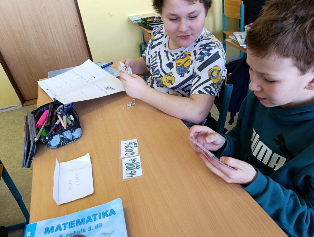 V pátek 20. 2. 2026 jsme 20 minut z hodiny matematiky v VI. B využili ke společnému hraní didaktických her. Tyto hry si v rámci dobrovolného domácího úkolu žáci dle svých možností a nápadů sami vyrobili. Objevila se domina, trimina, pexesa, kvízy a testové otázky - to vše na téma převody jednotek délky, obsahu a hmotnosti.