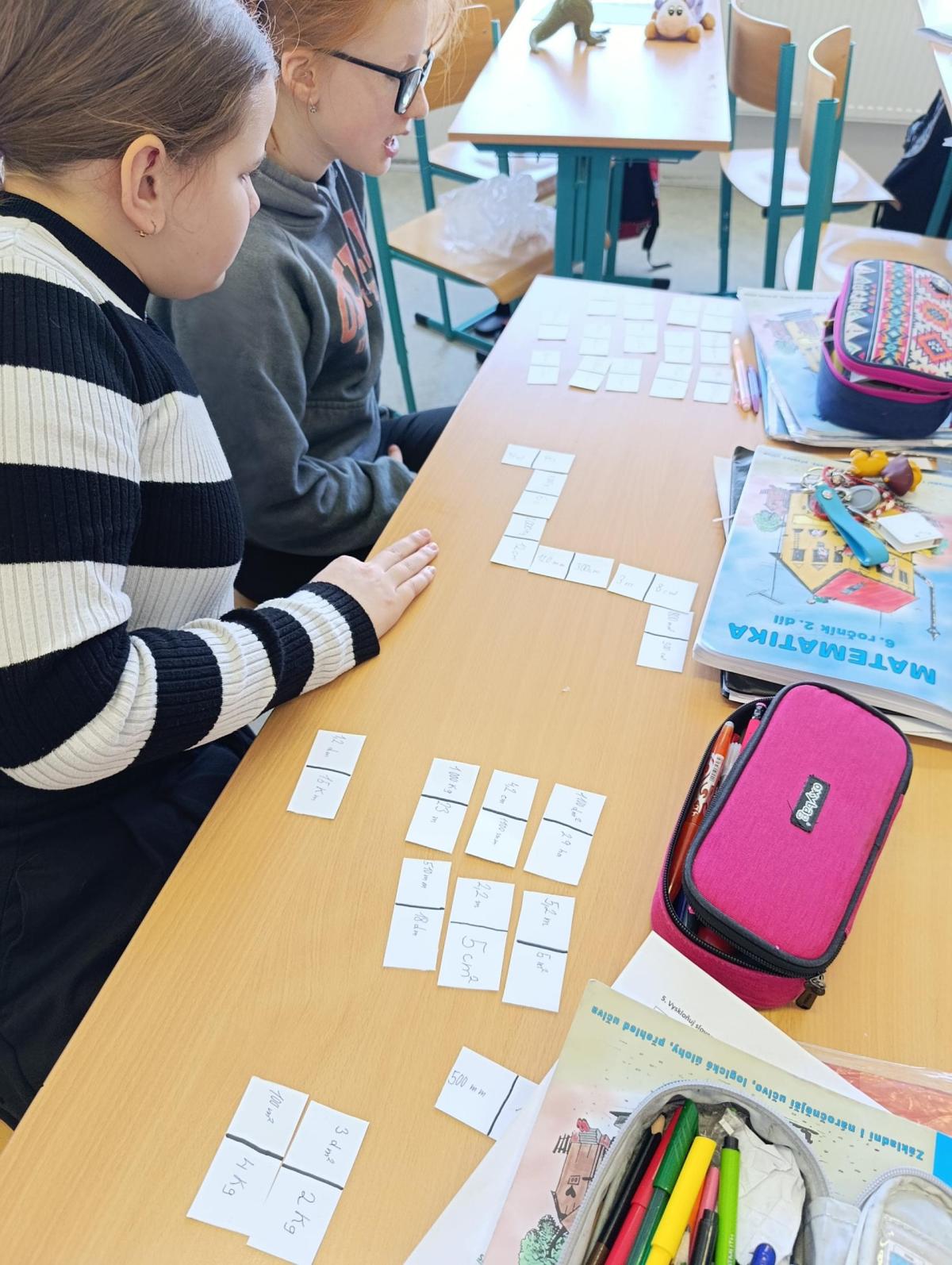 Šesťáci si v rámci hodnoceného dobrovolného domácího úkolu připravili didaktické hry na téma převody jednotek délky, obsahu a hmotnosti.