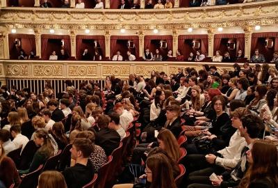 Únor se blížil ke svému závěru a osmáci si vyjeli za kulturou do Mahenova divadla v Brně. Představení se žákům líbilo, i když bylo smutné. Lidské tragédie se bohužel odehrávají v každé době. Děkujeme Sdružení rodičů za proplacené cestovné.