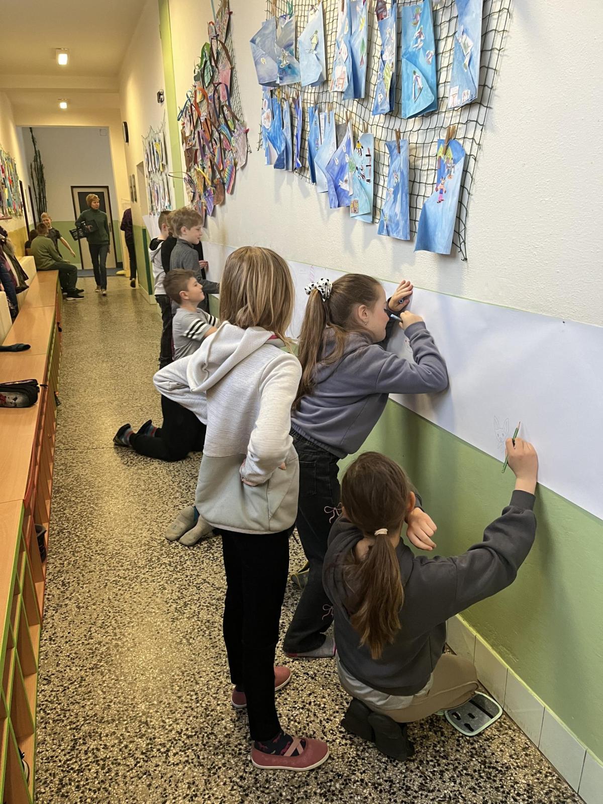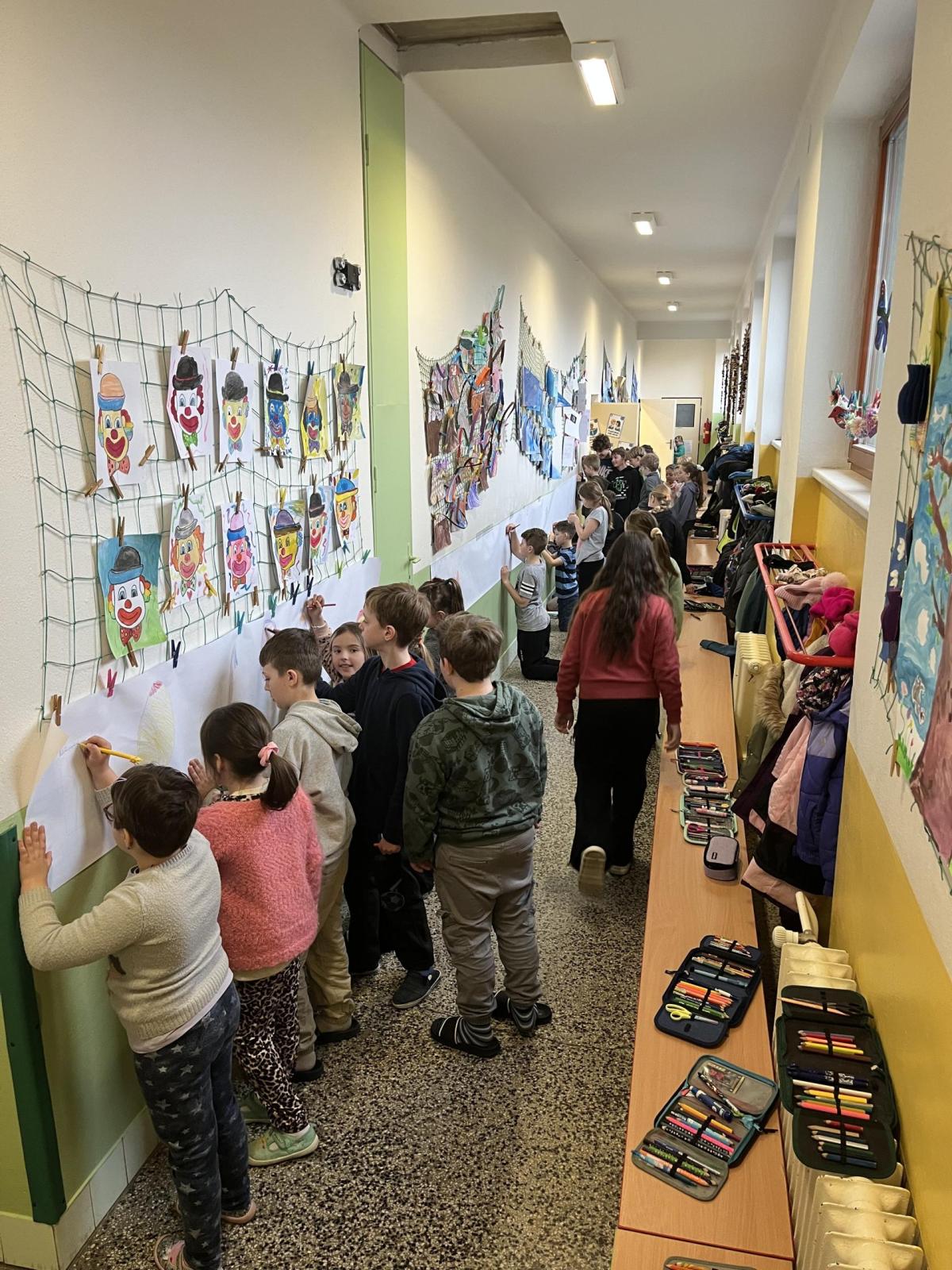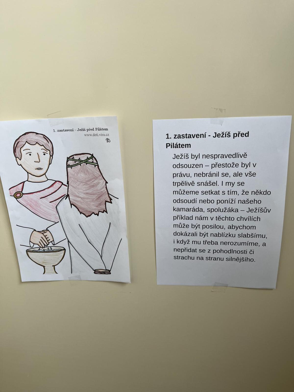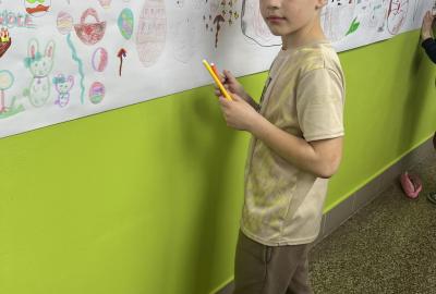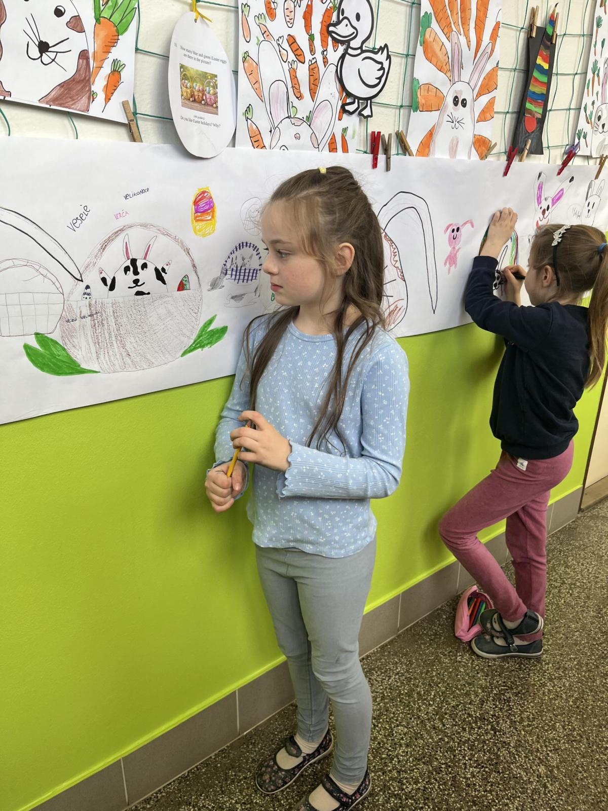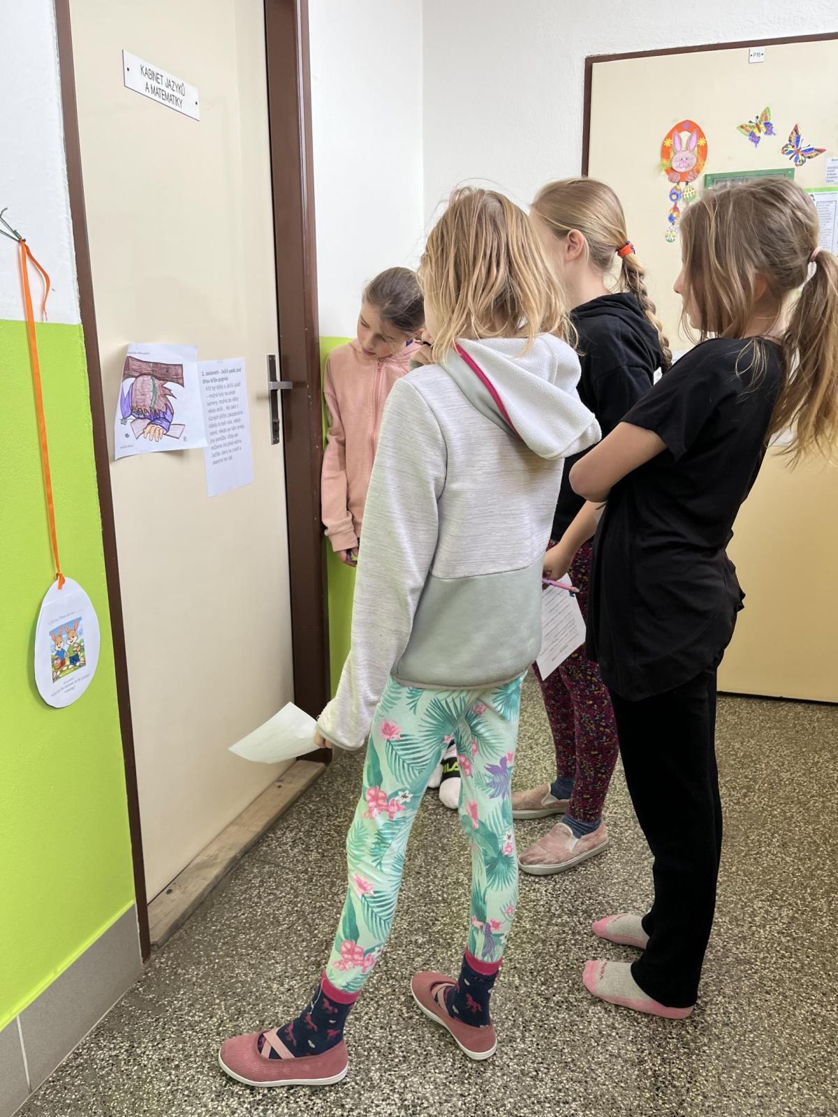 Celý svatý týden byl u nás ve škole protkán aktivitami s velikonoční tématikou. Hlavním cílem bylo nabídnout dětem rozmanité činnosti, kterými si mohou obohatit přestávky a dozvědět se něco nového. Na Modré pondělí jsme se oblékli do modrého a na zahradě za pavilonem řešili běhací kvíz, který ověřil naše znalosti o těchto svátcích. V úterý se celý pavilon dal do malování na balicí papír. A středu jsme si raději pojistili krásnými smajlíky, abychom se nemračili celý rok. Během celého týdne si mohly děti projít křížovou cestu a vyplnit pracovní listy, které byly uzpůsobené jejich věku. Pro děti byla také připravena běhací tajenka v anglickém jazyce, při které si děti zopakovaly, jak se slaví Velikonoce v jiných zemích.