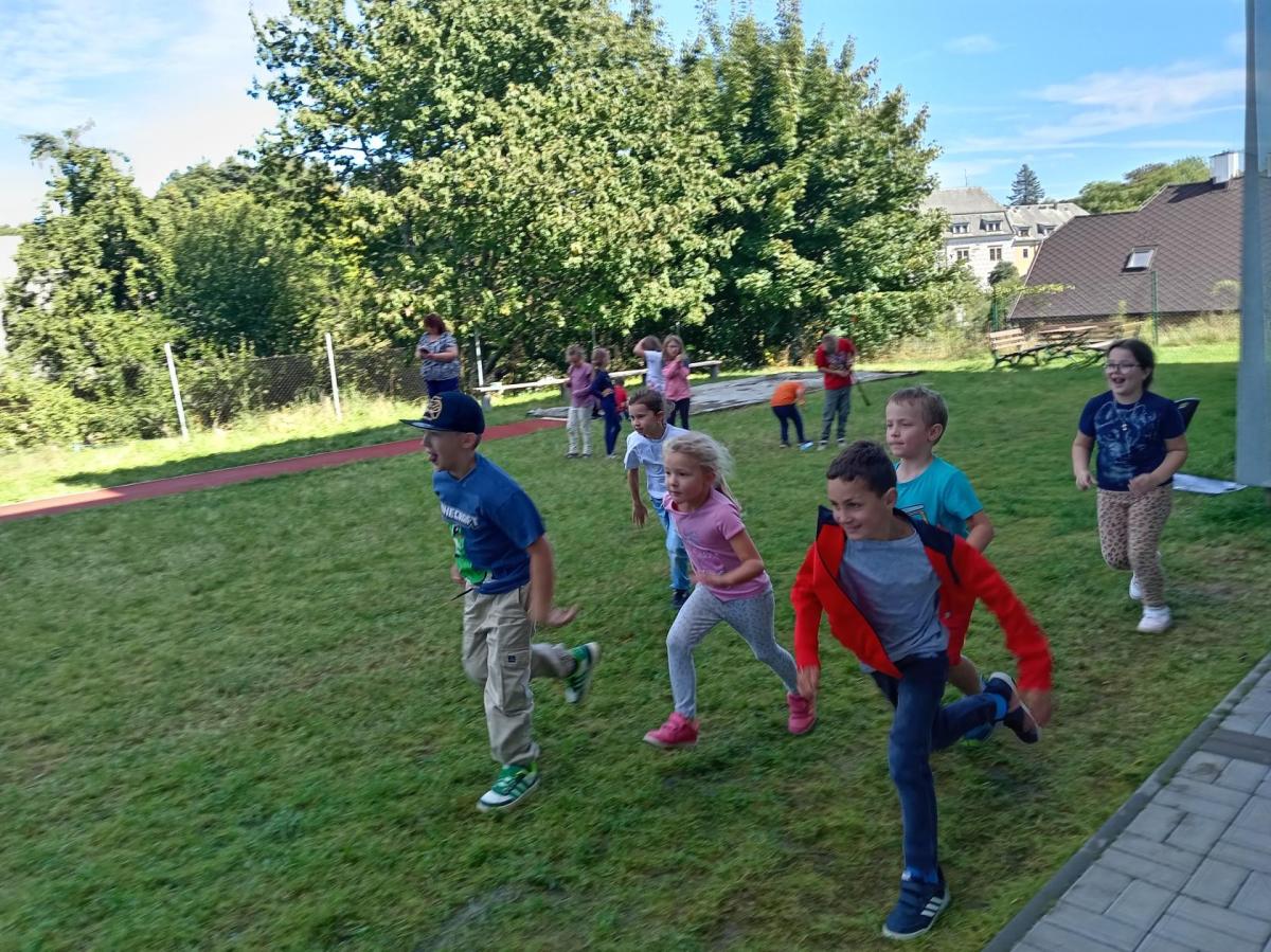 Minulý týden si děti ze všech oddělení družin vyzkoušely hry, kterými se bavili naši rodiče a prarodiče. Na zahradě ZŠ bylo připraveno několik stanovišť . Děti si tak mohly samy vyzkoušet skákákat gumu, vyzkoušet střelbu z luku, zahrát si školku s míčem nebo se švihadlem, nebo se naučit pohybové hry "Kuba řekl", "Cukr káva", "Honzo vstávej", "Rybičky, rybičky", "Vajíčko". Nechyběly ani kuličky, skákání panáka nebo čára. Cílem tohoto dne bylo ukázat dětem, že zábava se dá najít i mimo obrazovky, a že ty nejlepší hry jsou často nejjednodušší.