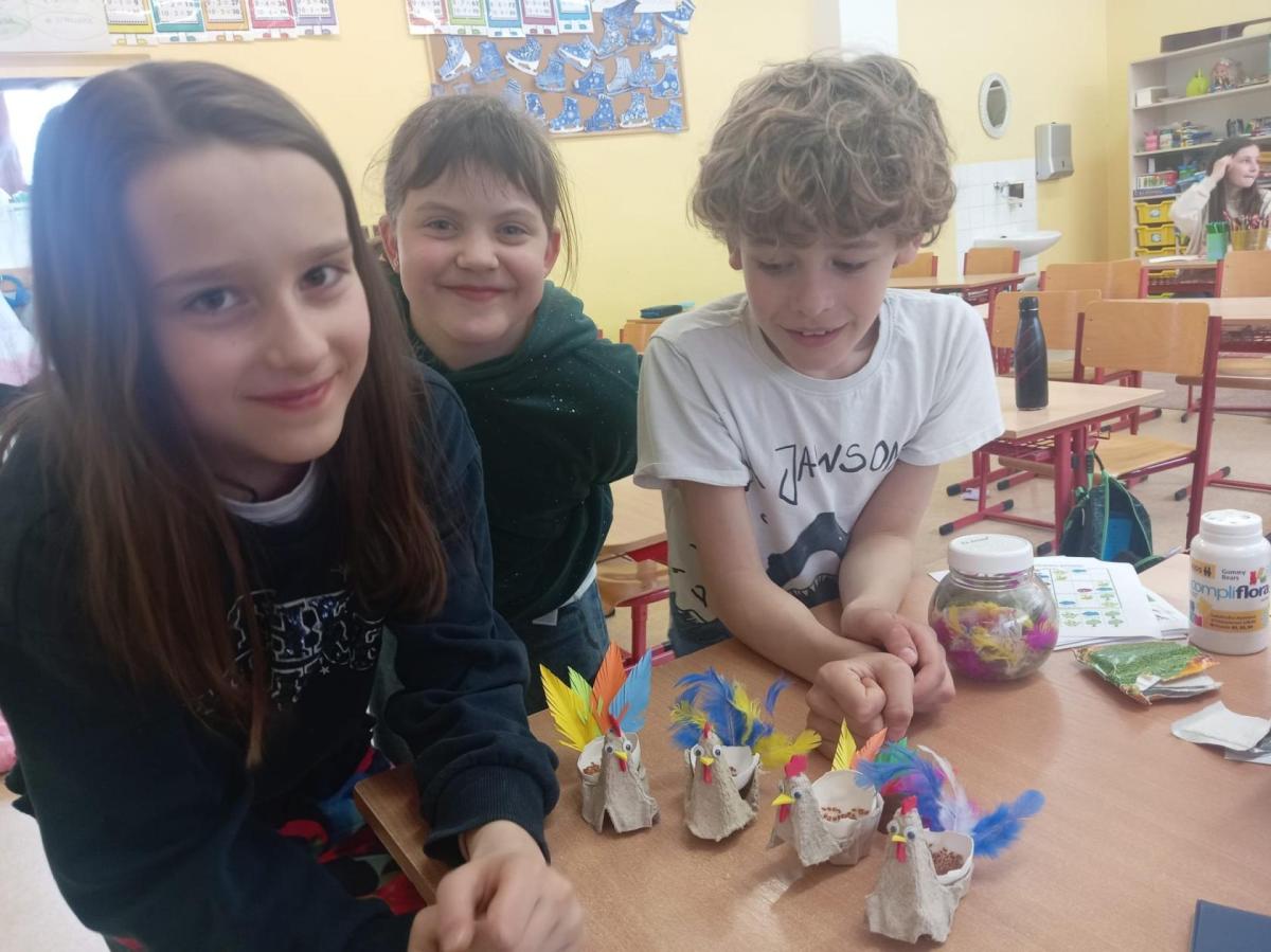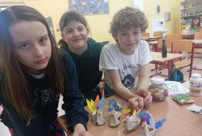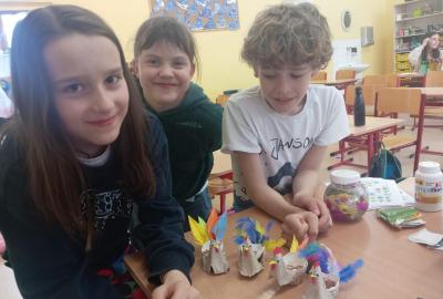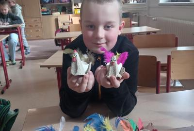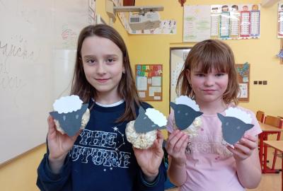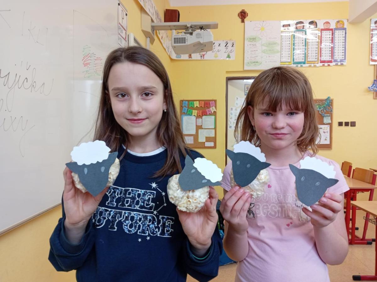 S příchodem prvních hřejivých paprsků jsme se v naší družině pustili do velkého jarního a velikonočního tvoření. vyzkoušeli jsme si výrobu roztomilých ptáčků z pestrobarevné vlny,papírové květiny, které na rozdíl od těch živých nikdy neuvadnou. Největší nadšení ale vzbudila příprava jedlé dekorace. Vyrobili jsme si originální velikonoční beránky z nadýchaného popcornu, a další drobné ozdoby.